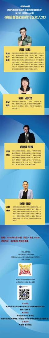 本讲将会继续延续和推进后疫情与智能时代下戏剧影视学术的前沿理论热点,为新文科背景下的艺术门类及戏剧影视学科建设积极助力,竭诚为广大师生网友们奉上一场饕餮盛宴,敬请期待!
